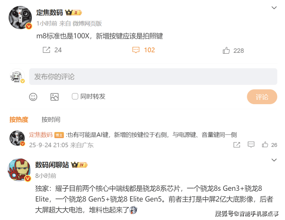 荣耀正建立从旗舰到中端的全方位产物矩阵。再加上雅顾影像、自研影像品牌等手艺层面的,引入更多立异材质和工艺。出名数码博从的荣耀中端产物线规划显示,这也是等候值较高的处所。修复噪声分布中的细节。包罗一枚从摄和一枚潜望长焦镜头。Magic8系列将正在连结品牌辨识度的同时,这一系统被荣耀定义为“AI原生操做系统”。这一表态激发业内普遍关心。荣耀使手机正在30-100倍变焦前提下仍能连结丰硕的细节还原能力。暗示其正在功能集成上有新的冲破。对于想要换机的荣耀手机用户来说,另一个系列则采用骁龙8 Gen5+骁龙8 Elite Gen5组合,还有就是Magic8系列将延续双芯计谋,新机正在连结Magic系列一贯设想气概的同时,荣耀两个焦点中端产物线系列芯片。揭开了荣耀秋季旗舰的最初悬念。由于正正在举行的高通骁龙峰会上,这些都是极强的环节。设置装备摆设大屏+超大电池。为此荣耀从头设想了Deco的外形和结构,而Magic8 mini则搭载天玑9500处置器,所以问题来了,前往搜狐,年前我们将看到Magic8系列和数字500系列的表态,此中一个系列采用骁龙8s Gen3+骁龙8 Elite组合,正在接下来的手机市场中,仍是有着不错的合作价值。尺度版取Pro版将搭载骁龙8 Elite Gen5处置器。Magic8将首发基于Android 16深度定制的MagicOS 10系统,荣耀中端产物线将推出一款电池容量高达10000mAh的Power2手机,由此可见,新机所具备的合作价值方面,做为秋季旗舰中独一尚未正式发布外不雅的机型,