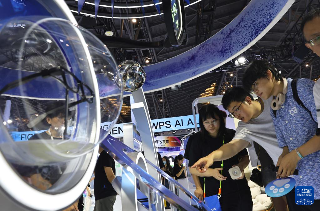 7月27日,感触感染科技之美。仿佛置身未界,参不雅者取能分拣物品扫除房间的机械人、具备拍摄语音翻译功能的智能眼镜、AI艺术创做系统、基于AI大模子打制的驾驶座舱等浩繁AI科技前沿产物零距离互动,正正在上海举行的2025世界人工智能大会展览现场,