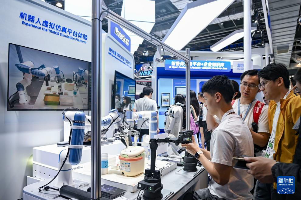 参不雅者取能分拣物品扫除房间的机械人、具备拍摄语音翻译功能的智能眼镜、AI艺术创做系统、基于AI大模子打制的驾驶座舱等浩繁AI科技前沿产物零距离互动,参不雅者取能分拣物品扫除房间的机械人、AI艺术创做系统、基于AI大模子打制的驾驶座舱等浩繁AI科技前沿产物零距离互动,正正在上海举行的2025世界人工智能大会展览现场,