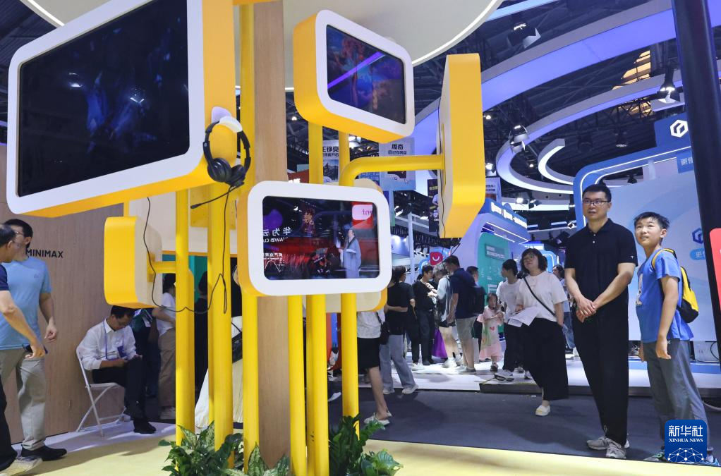 正正在上海举行的2025世界人工智能大会展览现场,仿佛置身未界,感触感染科技之美。